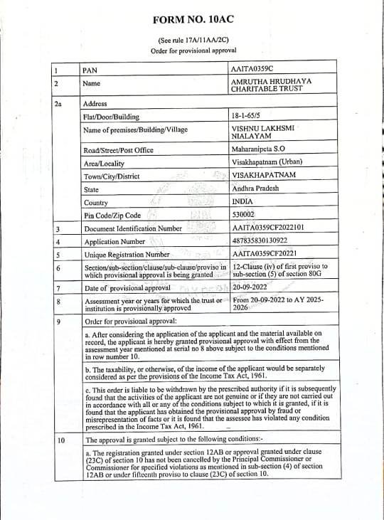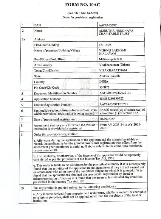 The AMRUTHA HRUDHAYA CHARITABLE TRUST